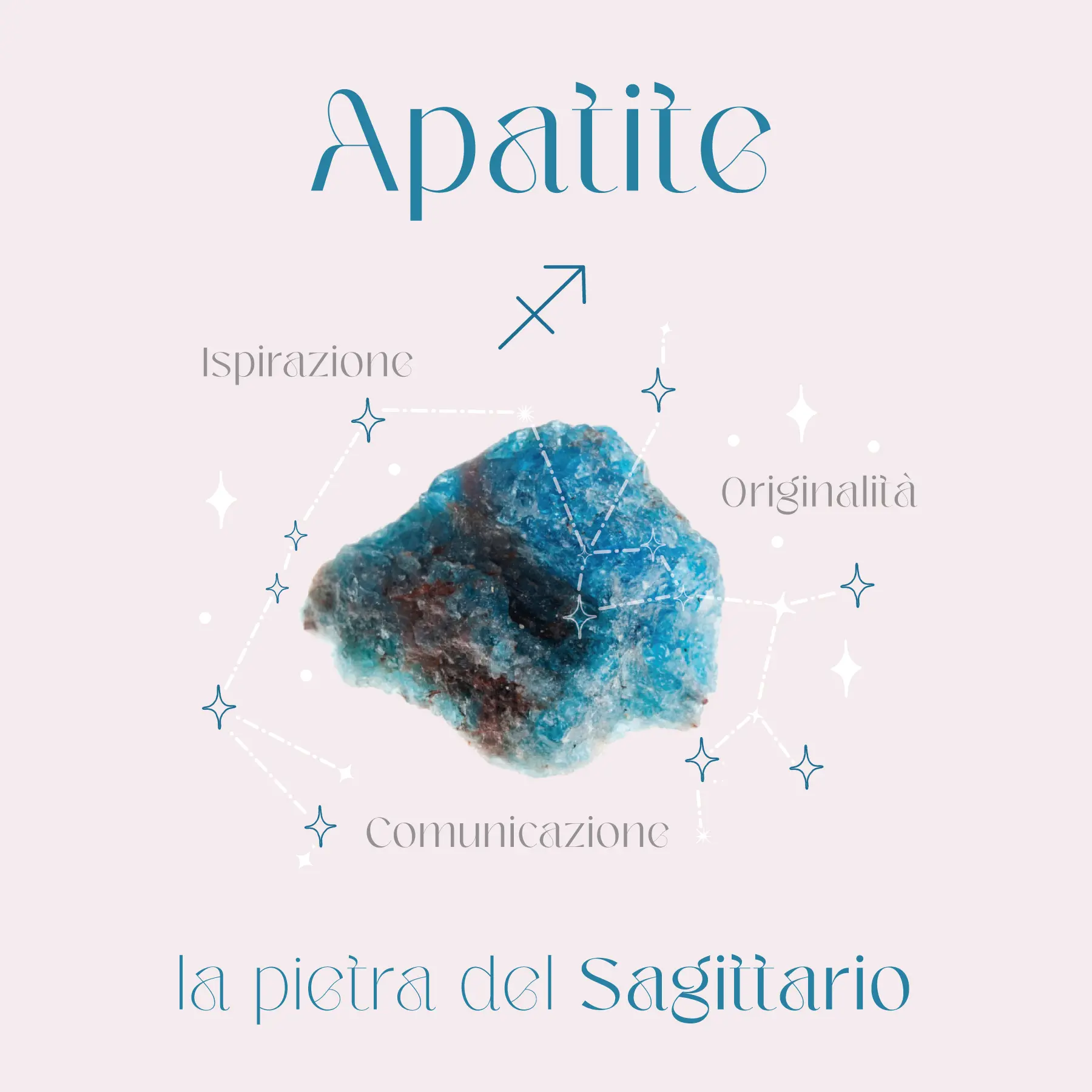 L’Apatite è un simbolo di forza interiore, spinge il Sagittario a perseguire i suoi sogni, ad avere idee innovative e originali e a raggiungere i suoi obiettivi, senza paura e senza compromessi.