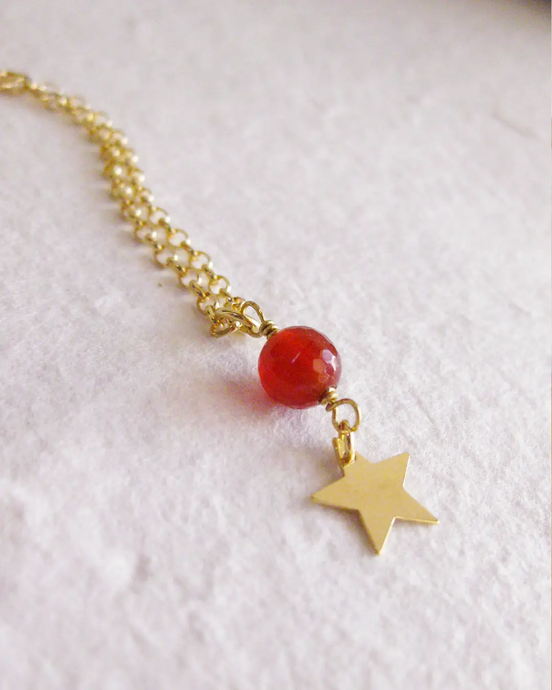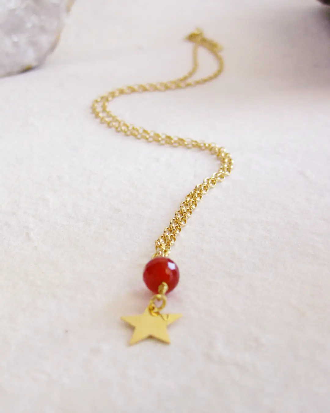Pietra sfaccettata di Corniola di circa 6 mm. Lunghezza: circa 42 cm + 3 cm di allungo.