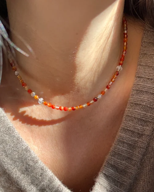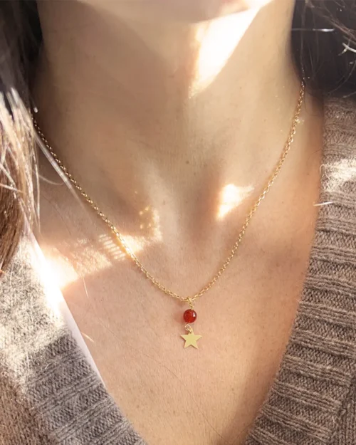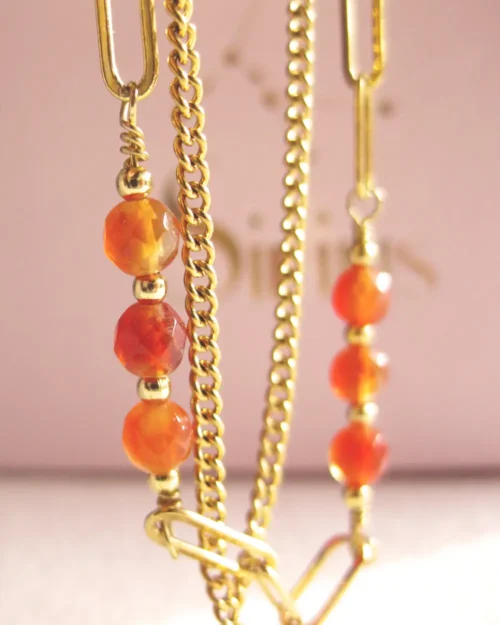 Collana asimmetrica Foliage in Argento 925 con pietre naturali di Granato, Quarzo Citrino e Corniola